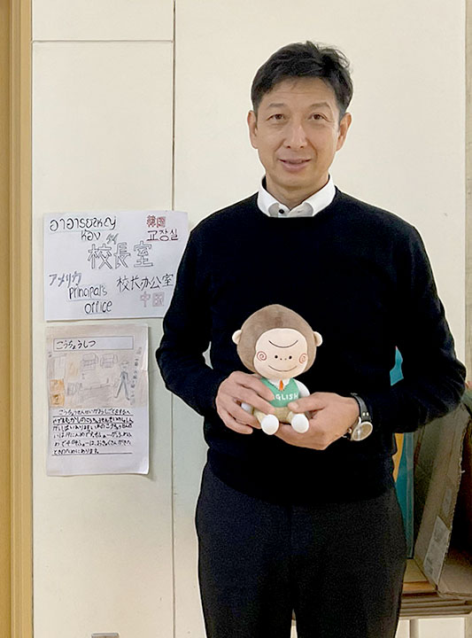 えいごりらが全国の学校を訪問し、