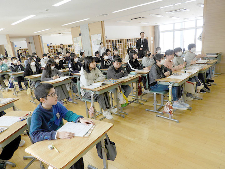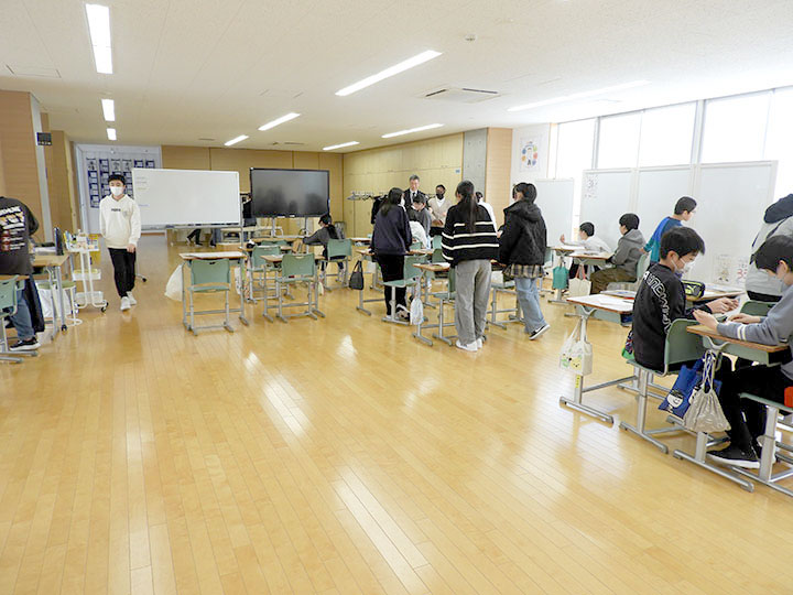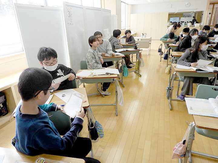普段の教室から、多目的スペースに机を持って集まった6年生たち。