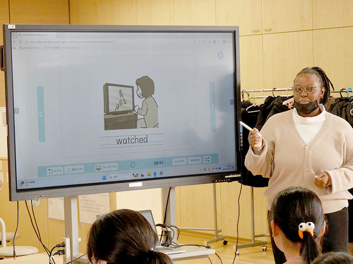 この日の授業は、普段どおり、デジタル教科書を電子黒板に映し出しながら進められたよ。