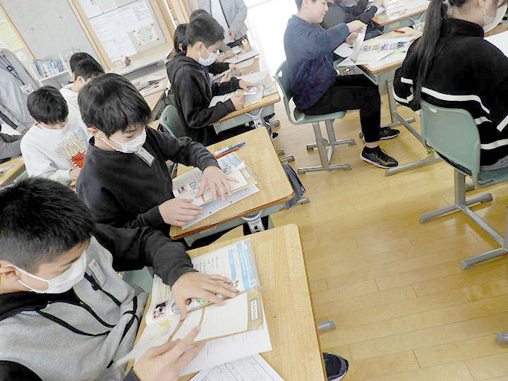 その後、子どもたちが「英語で五城目町をPRする」ための調査活動を開始。自然、歴史、観光、偉人、名産品、そして自分たちの学校などについて、グループに分かれて英語でまとめるんだって。